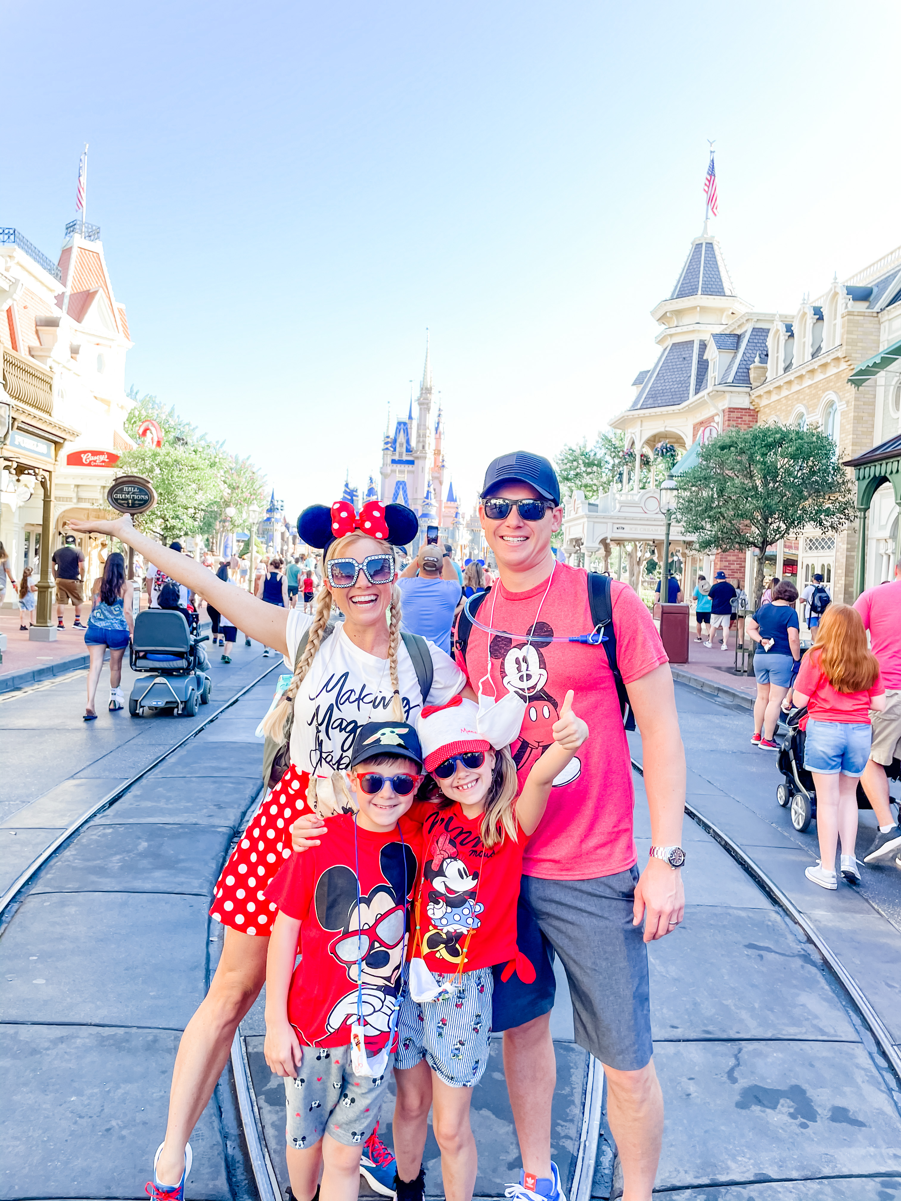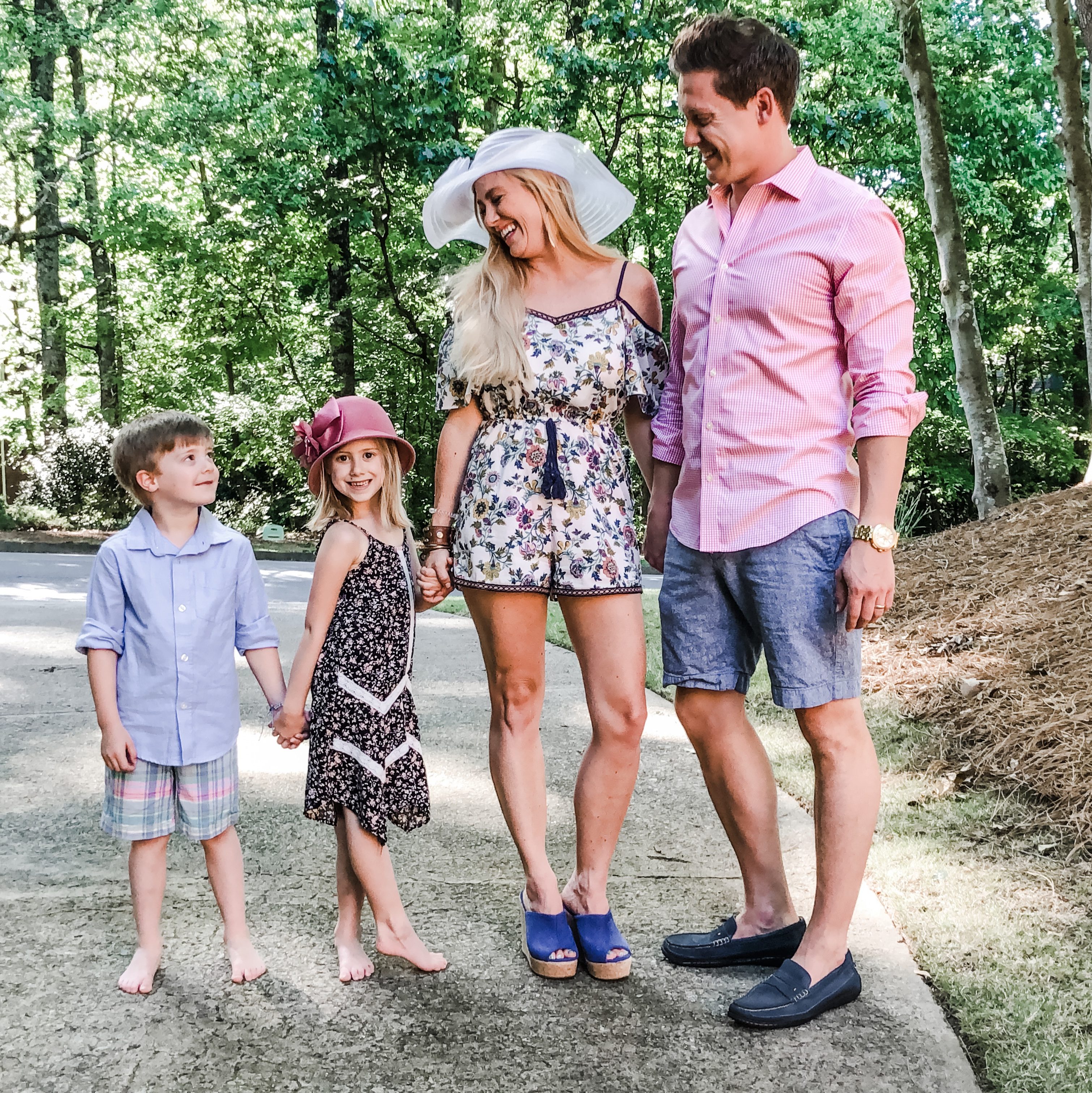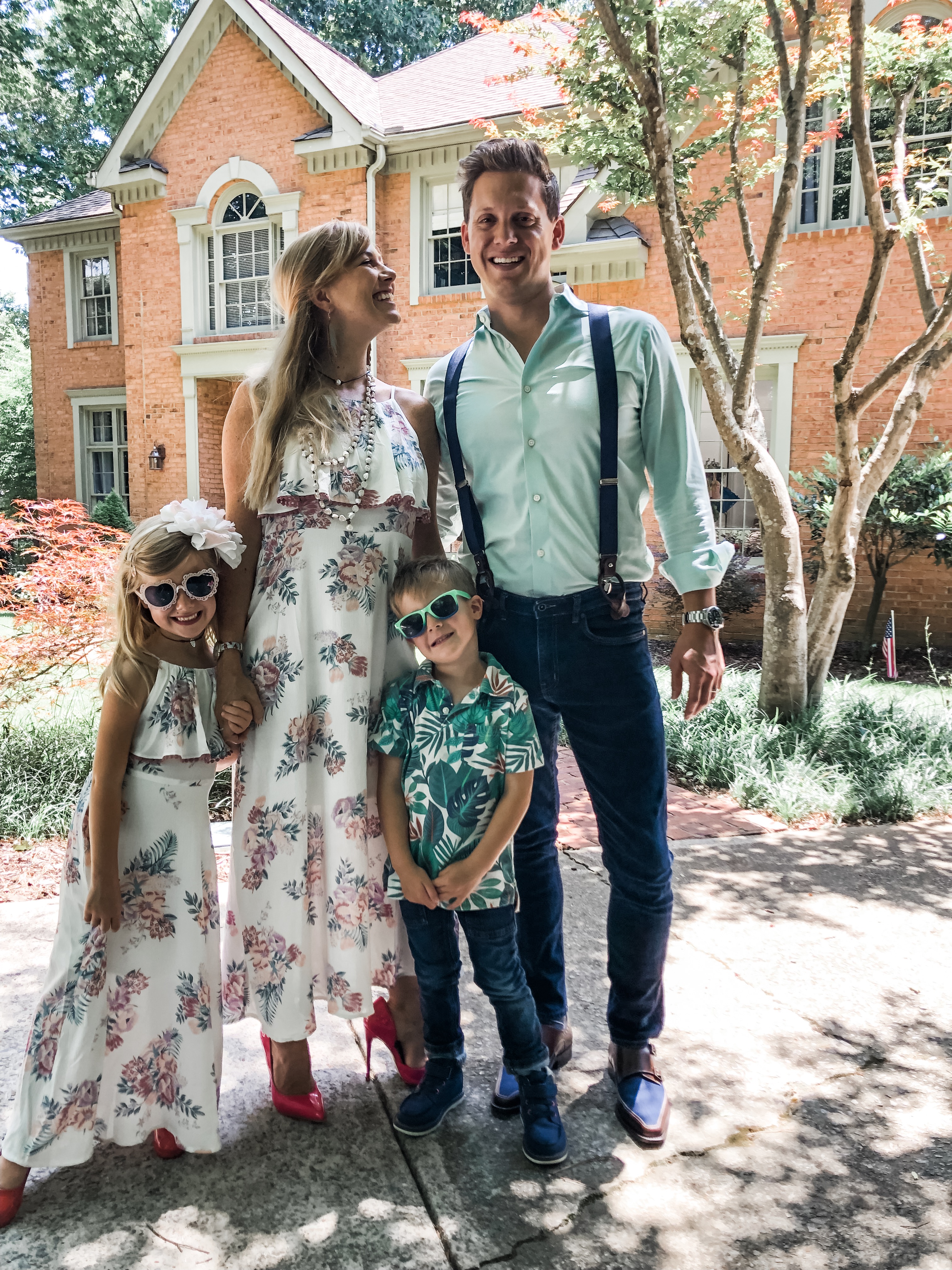 - Coordinate Loosely – Do not wear clashing colors or the complete matching t-shirt thing. It just screams over the top and sloppy. Do try and coordinate with the season theme, the place your taking them, and family. blues and tans, orange and green with pumpkins, Christmas colors at the holidays, match just the girls or everyone wear mickey at the theme park (this also helps identify kids in big crowds. ;).