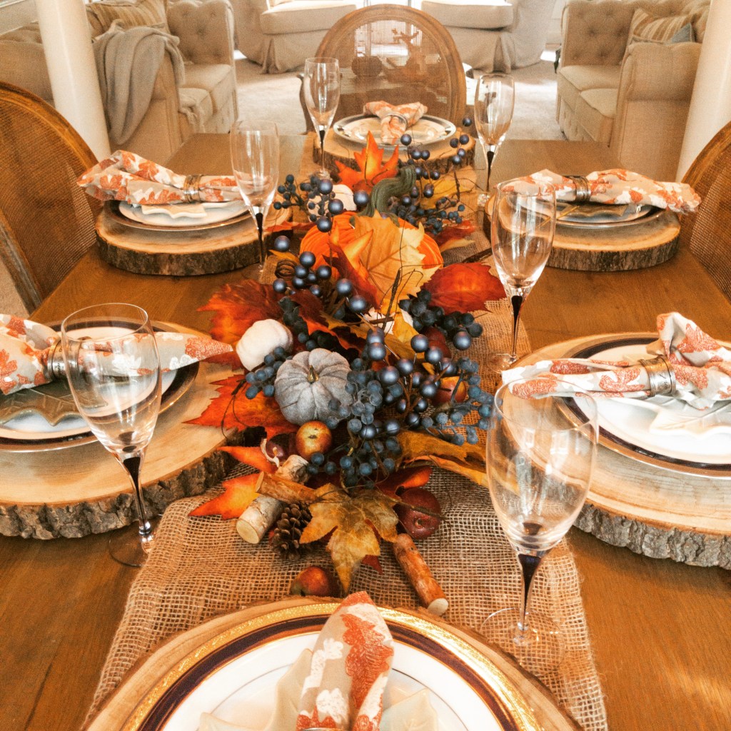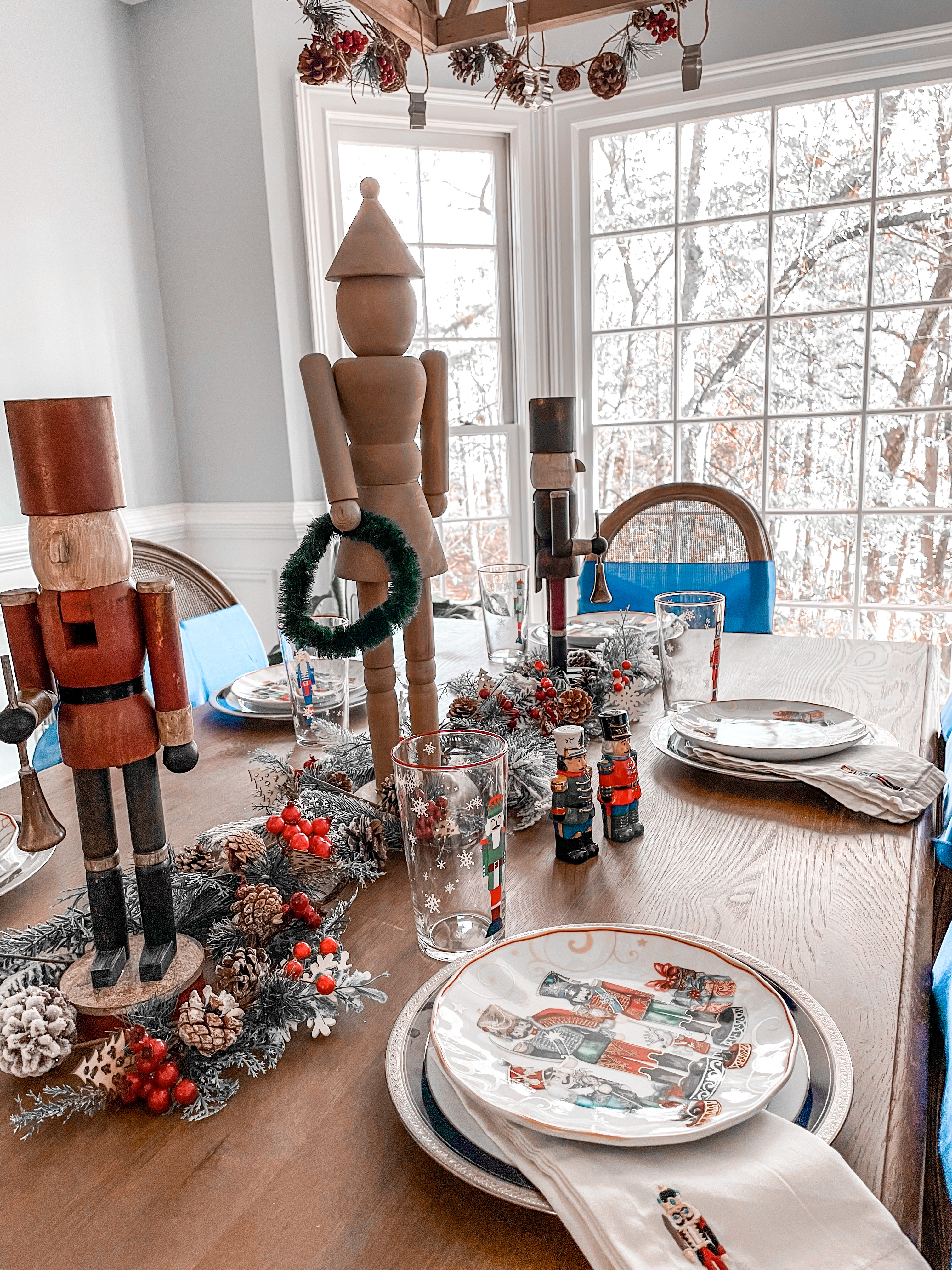 Create a Theme Through Out – For fall I stick to everything pumpkin and then literally have three items for Halloween and three pieces for Thanksgiving that I switch out. For spring I choose pastel and white so that it the white I can reuse for summer where I just bring in the red and blue. Christmas is Nutcracker in our house except for the kid rooms where I decorate wholly in grinch theme. Some people say too much “matchy-matchy” can be overwhelming. Honestly I have found that if you are going with orange and blue for a table adding a blue pillow on the couch and an orange candle in the kitchen really goes a long way.
